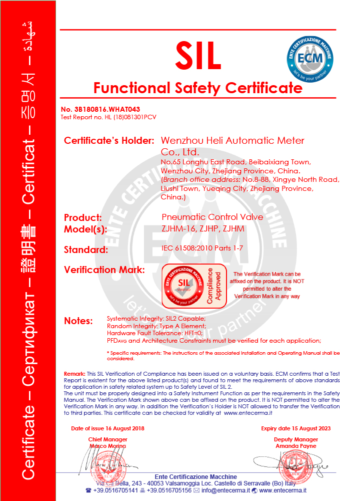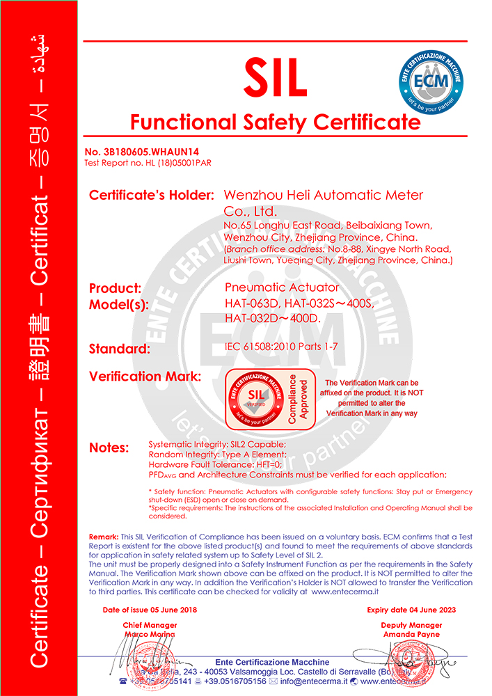 HAT氣動(dòng)SIL證書