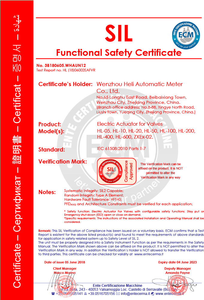 HL系列SIL證書
